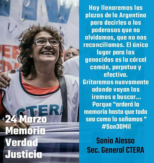 REPUDIAMOS LA DESIGNACIÓN DE LA DEFENSORA DE GENOCIDAS CECILIA PANDO EN UNA ESCUELA PRIMARIA. Ver nota publicada en el diario Página/12. EL REPUDIO A CECILIA PANDO EVITÓ QUE LLEVARA SU DOCTRINA AL AULA. EXPULSADA POR APOLOGISTA