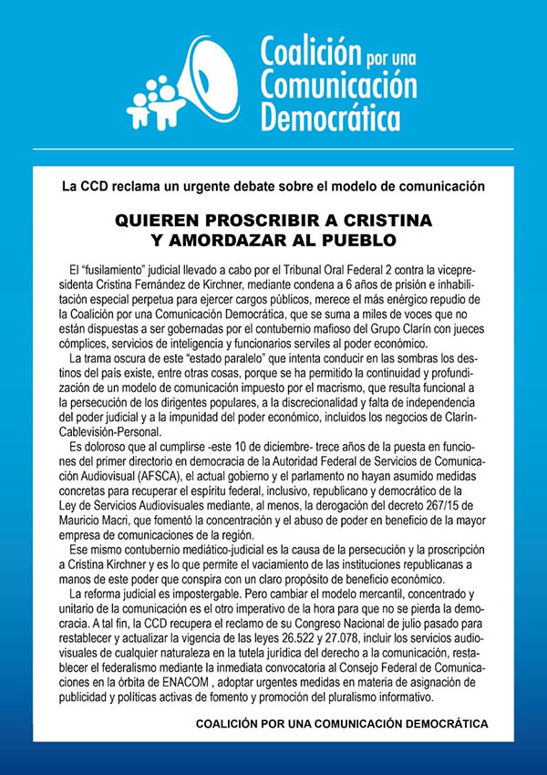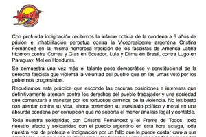 CARTA DE REPUDIO AL PROCESO DE LAWFARE CONTRA CRISTINA KIRCHNER DE LA CUT-BRASIL