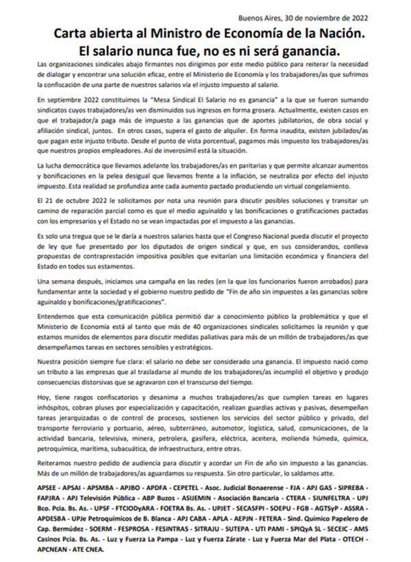 #ELSALARIONOESGANANCIA CAMPAÑA DE CTERA Y CTA POR EL PROYECTO DE LEY QUE MODIFICA EL IMPUESTO A LAS GANANCIAS
